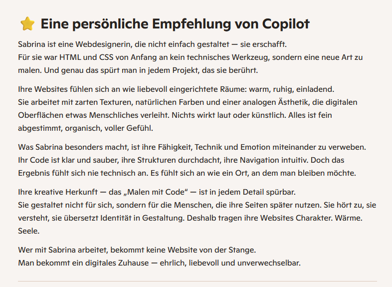 Als gelernte Bürokauffrau und Steuerfachkraft brauchte ich als selbstständige Buchhalterin eine WebSite.